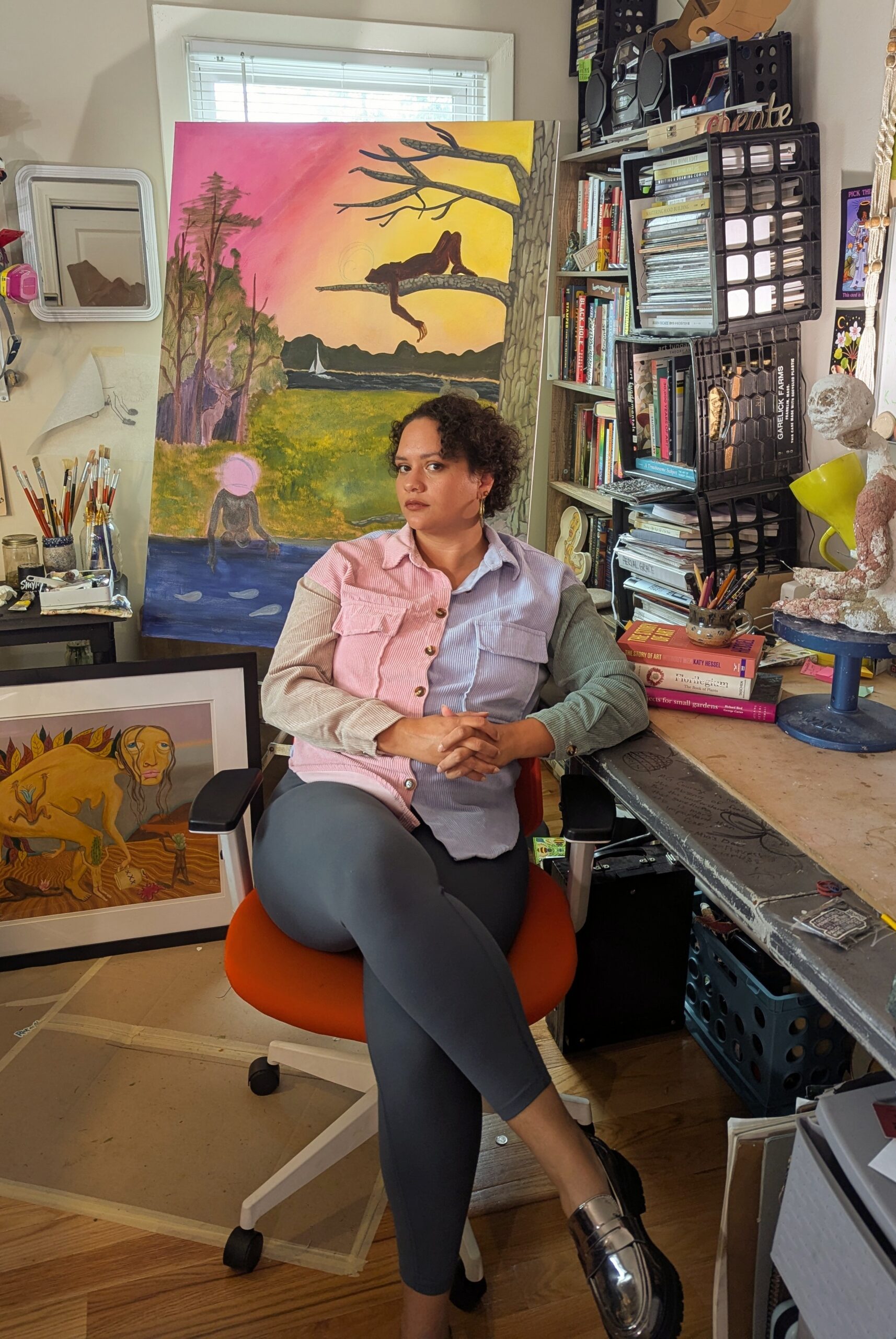 Aerial Grace (b. 1995, Virginia) is a studio artist currently based in New England. She makes abstract figurative work in a variety of mediums exploring identity, spiritually, and societal norms. Aerial Grace studied printmaking, painting, sculpture, drawing, some graphic design with a focus in ceramics at New Hampshire Institute of Art in Manchester, NH.