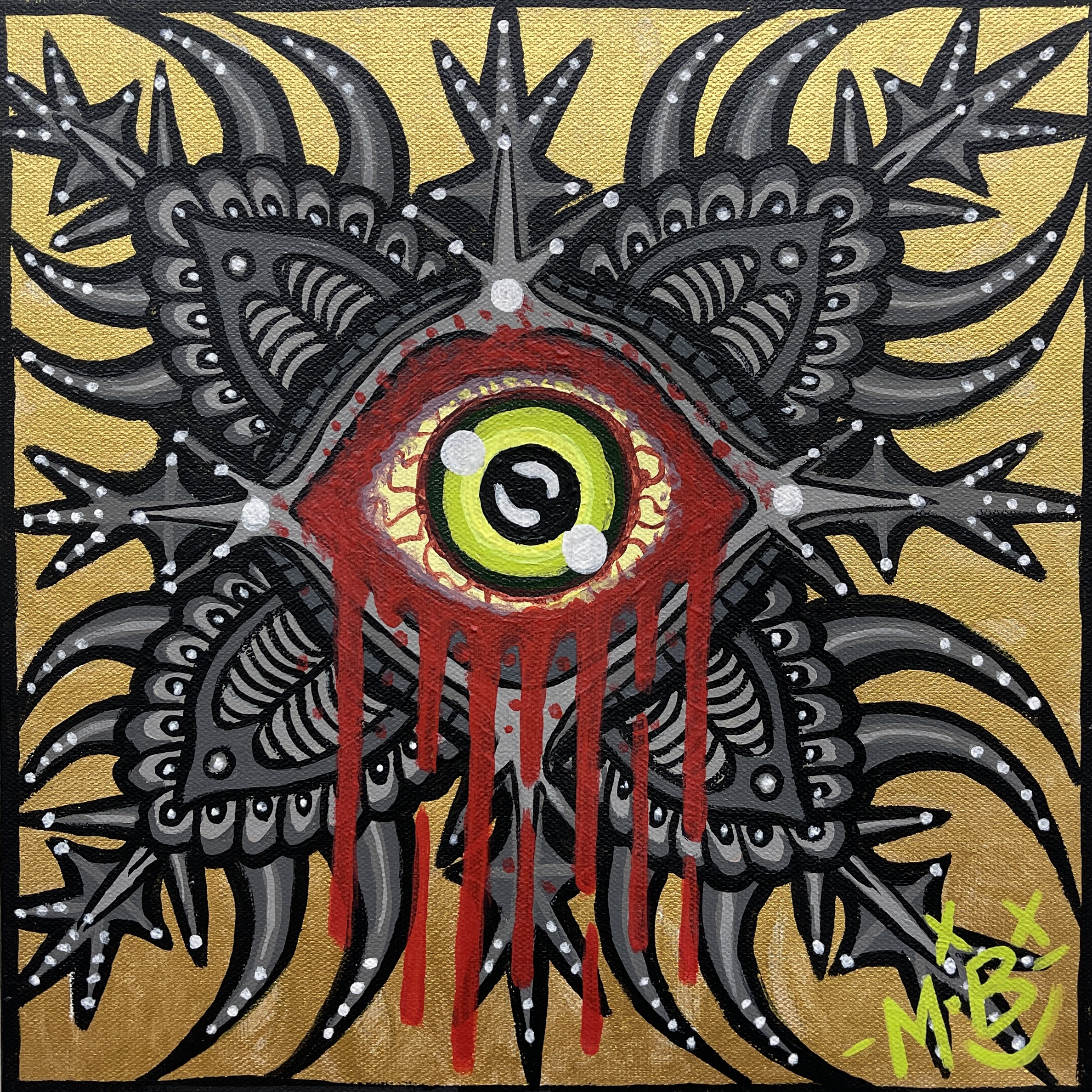 Michael Evans (b. 1979, Sanford, ME) takes various influences from animation by Max Fleisher, Bosch and absurdist thought, and beyond. He had developed as a painter into a style he