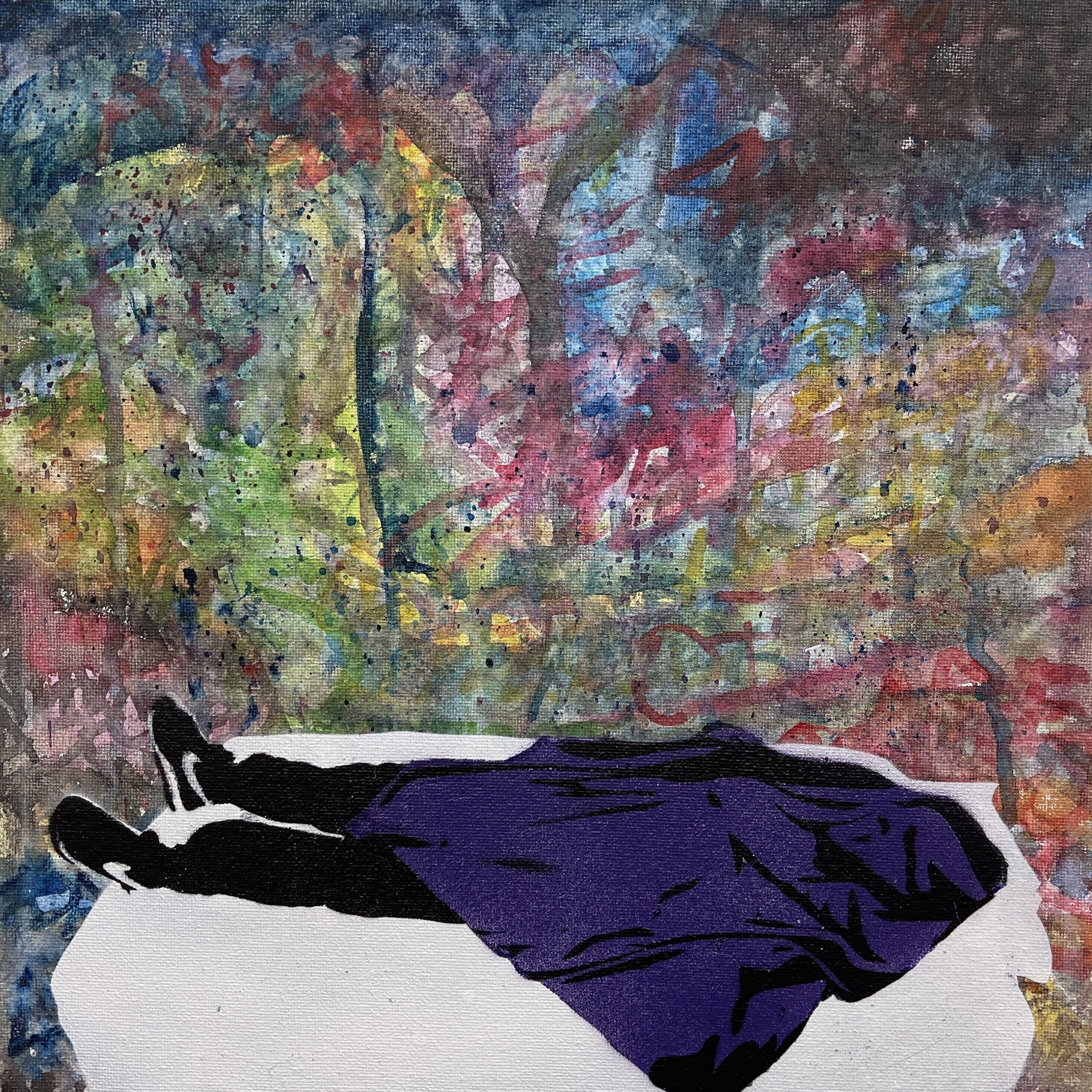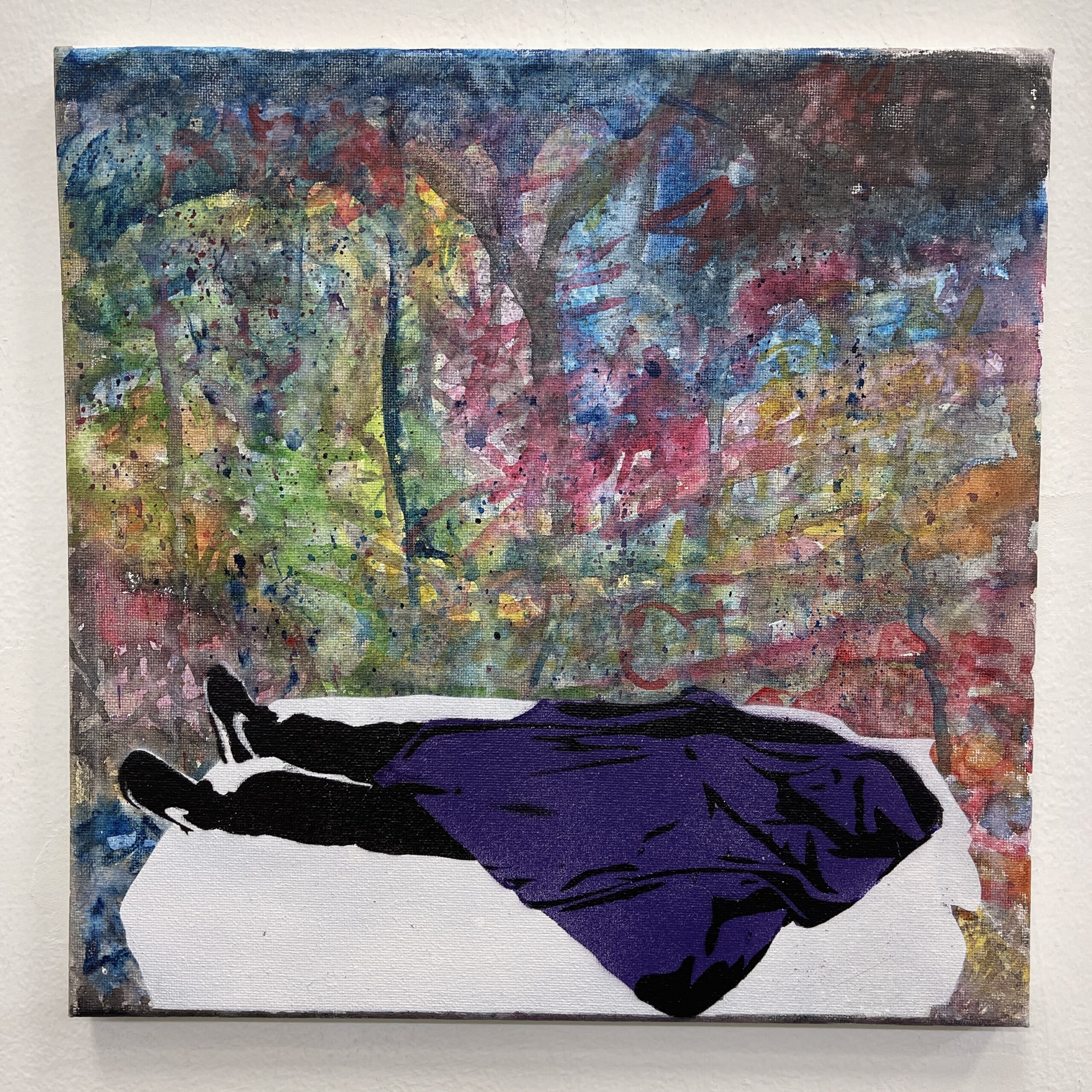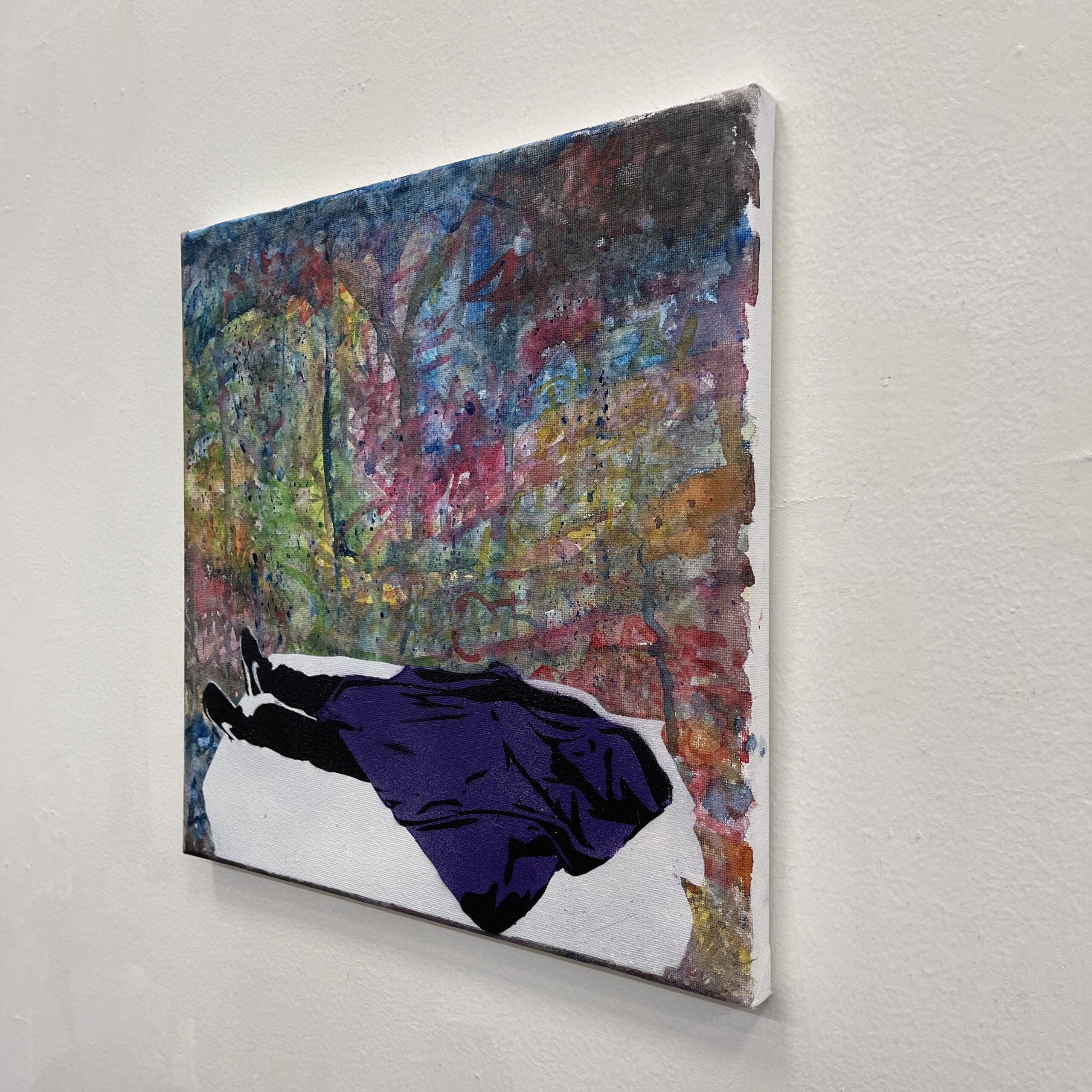 Watercolor, spray paint on canvas