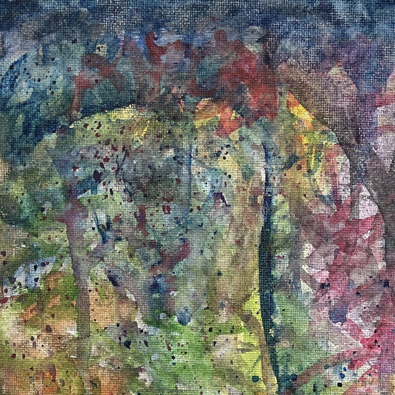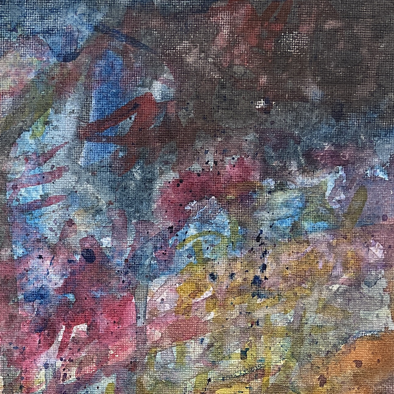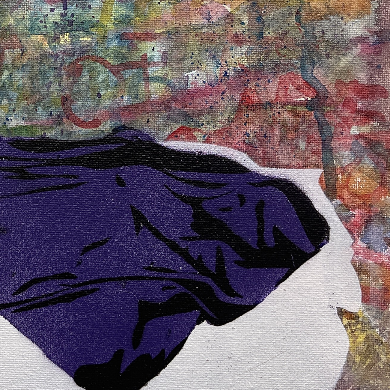 Watercolor, spray paint on canvas