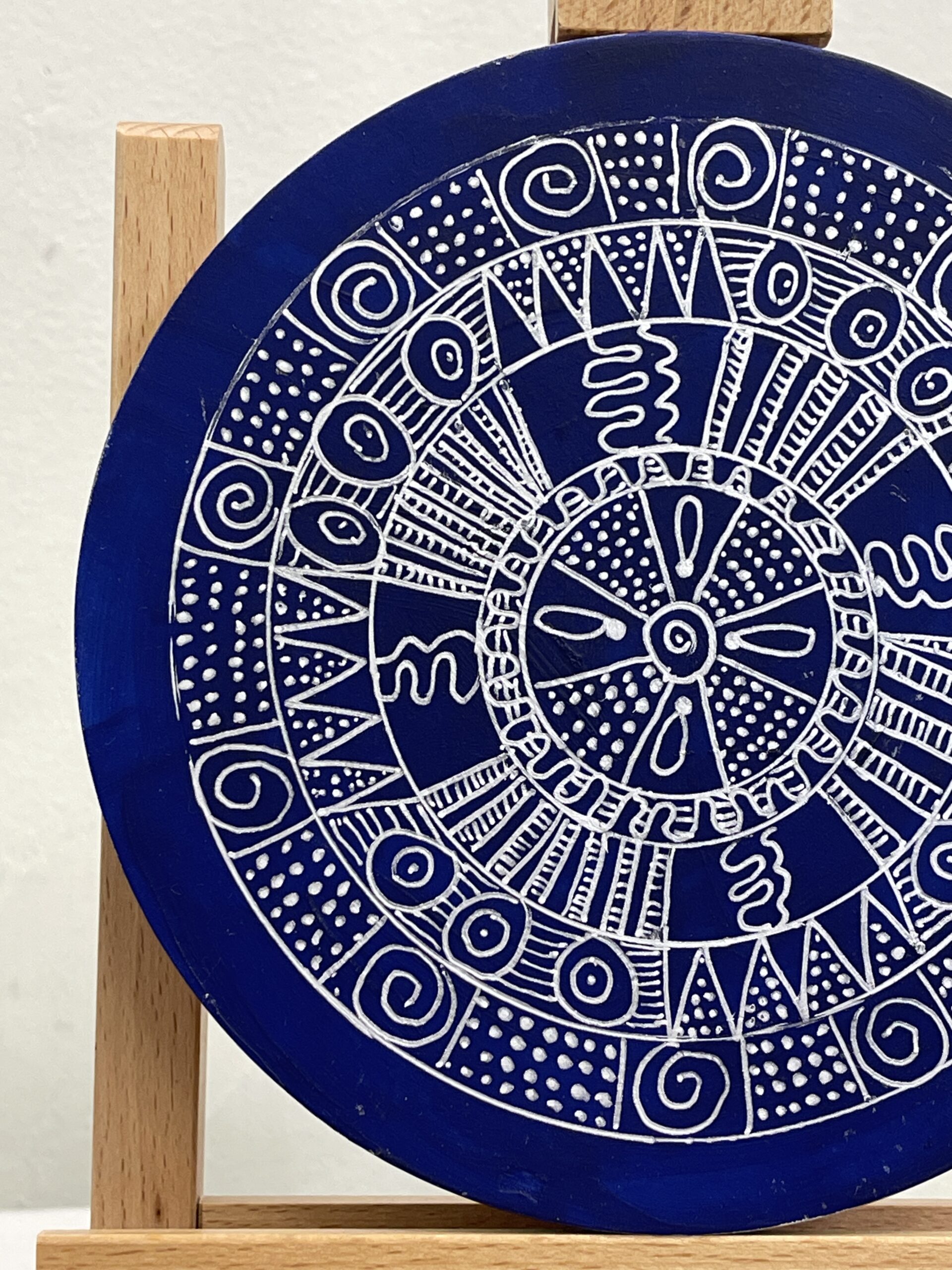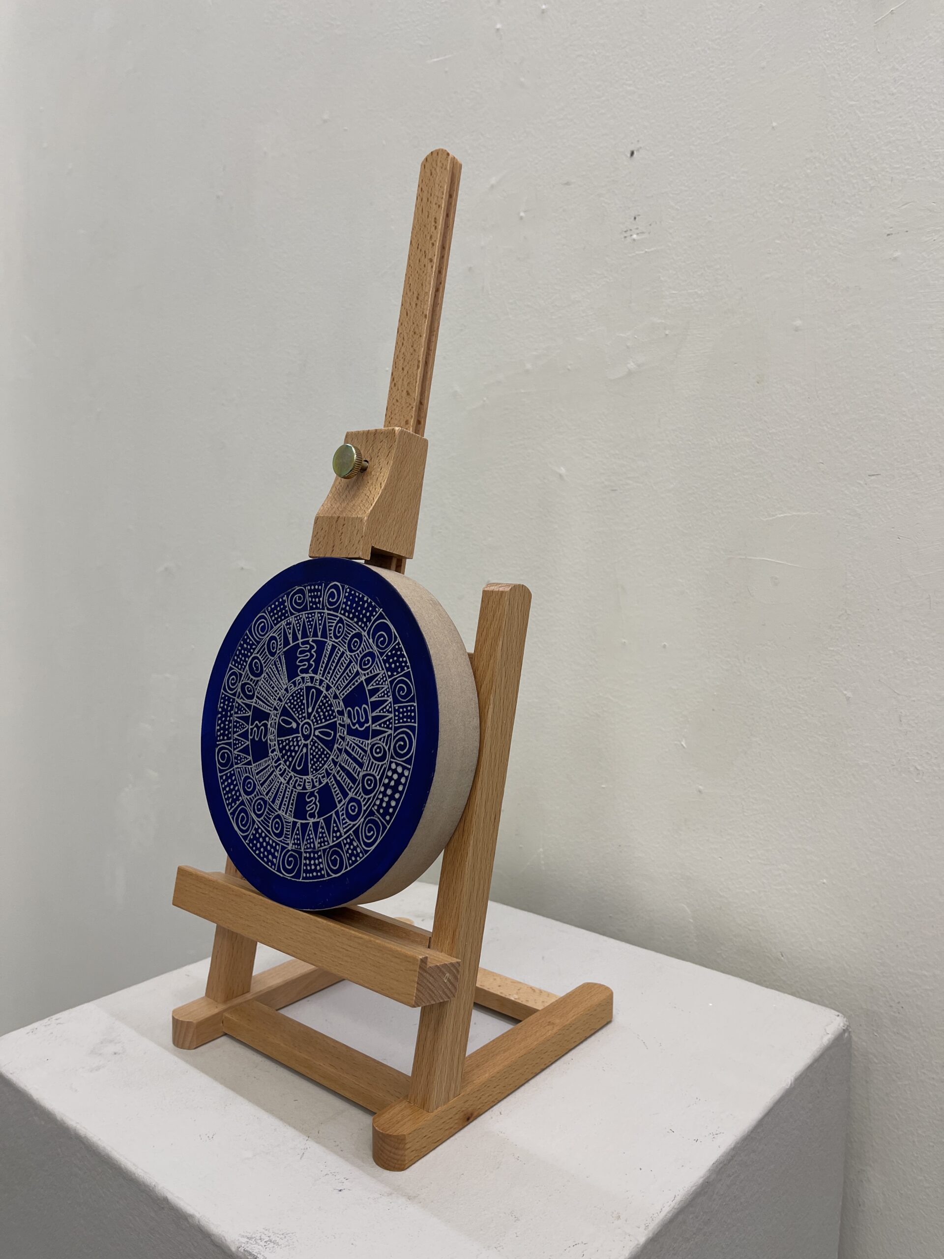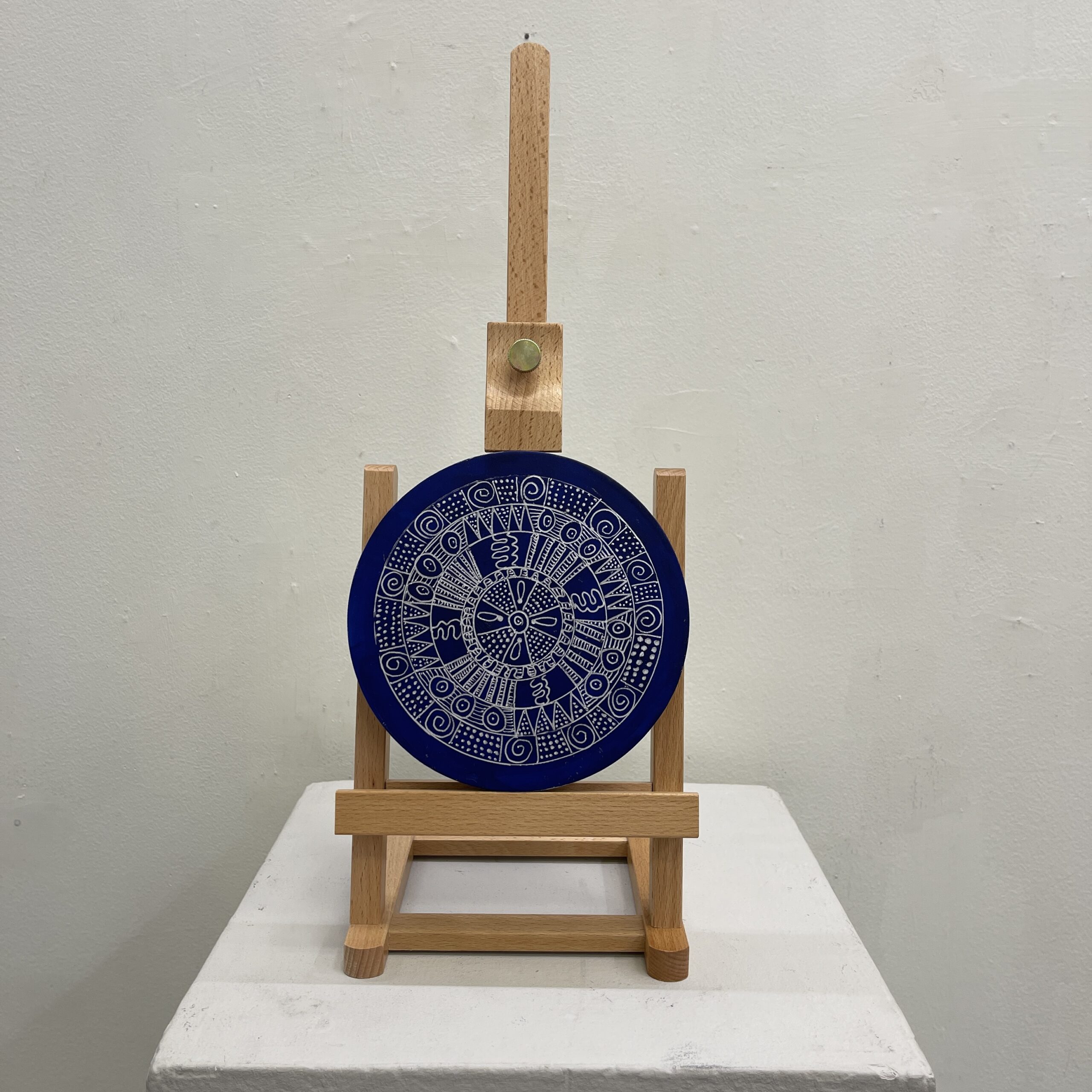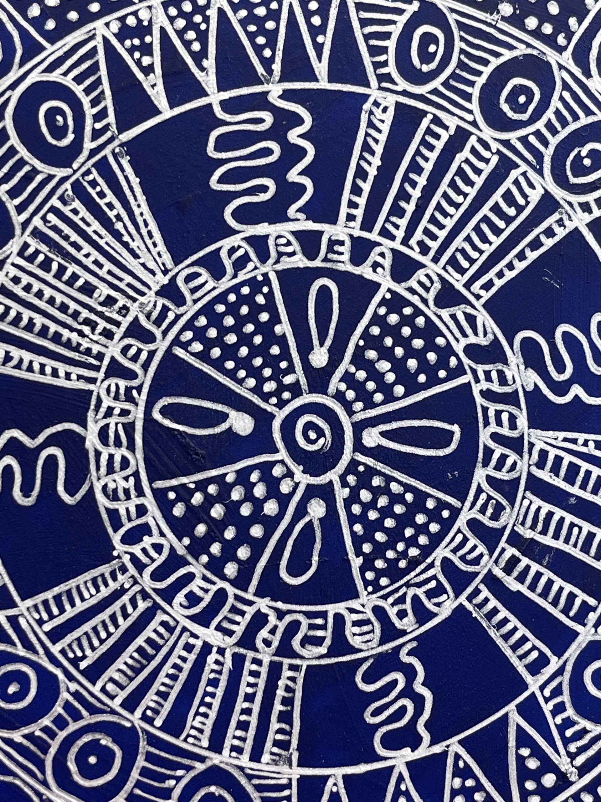 Acrylic, silver ink on board