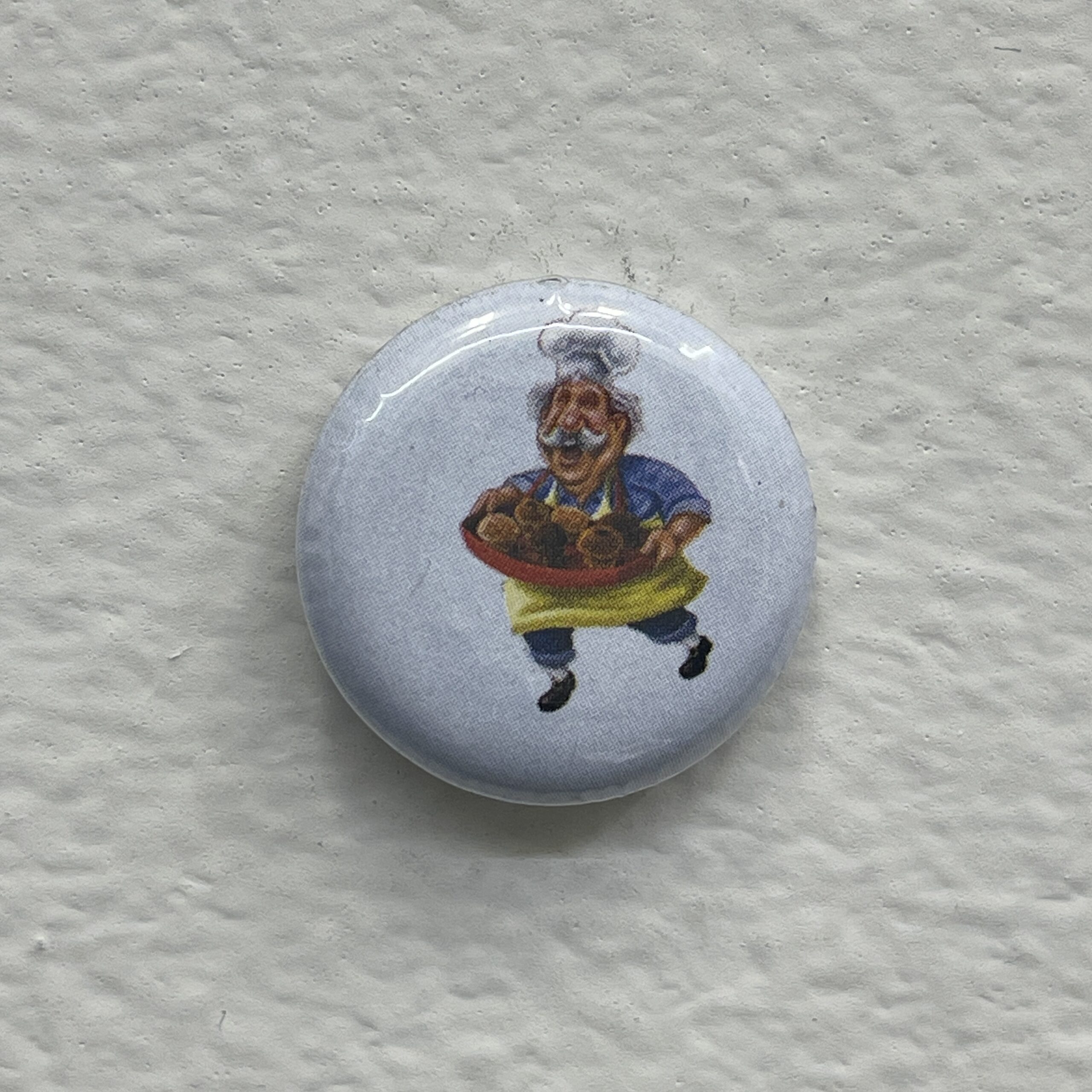 Found paper, one of a kind, manual button maker