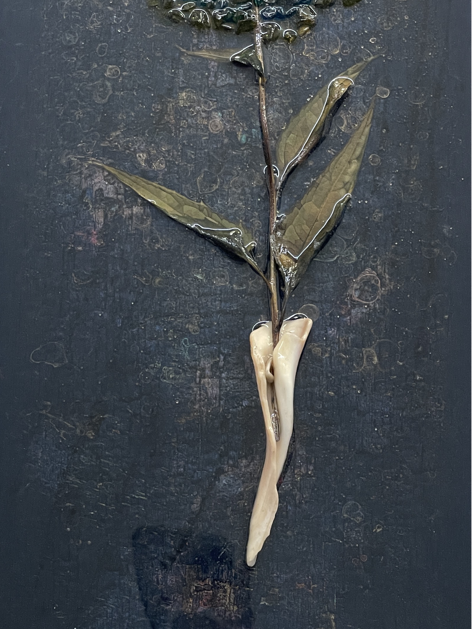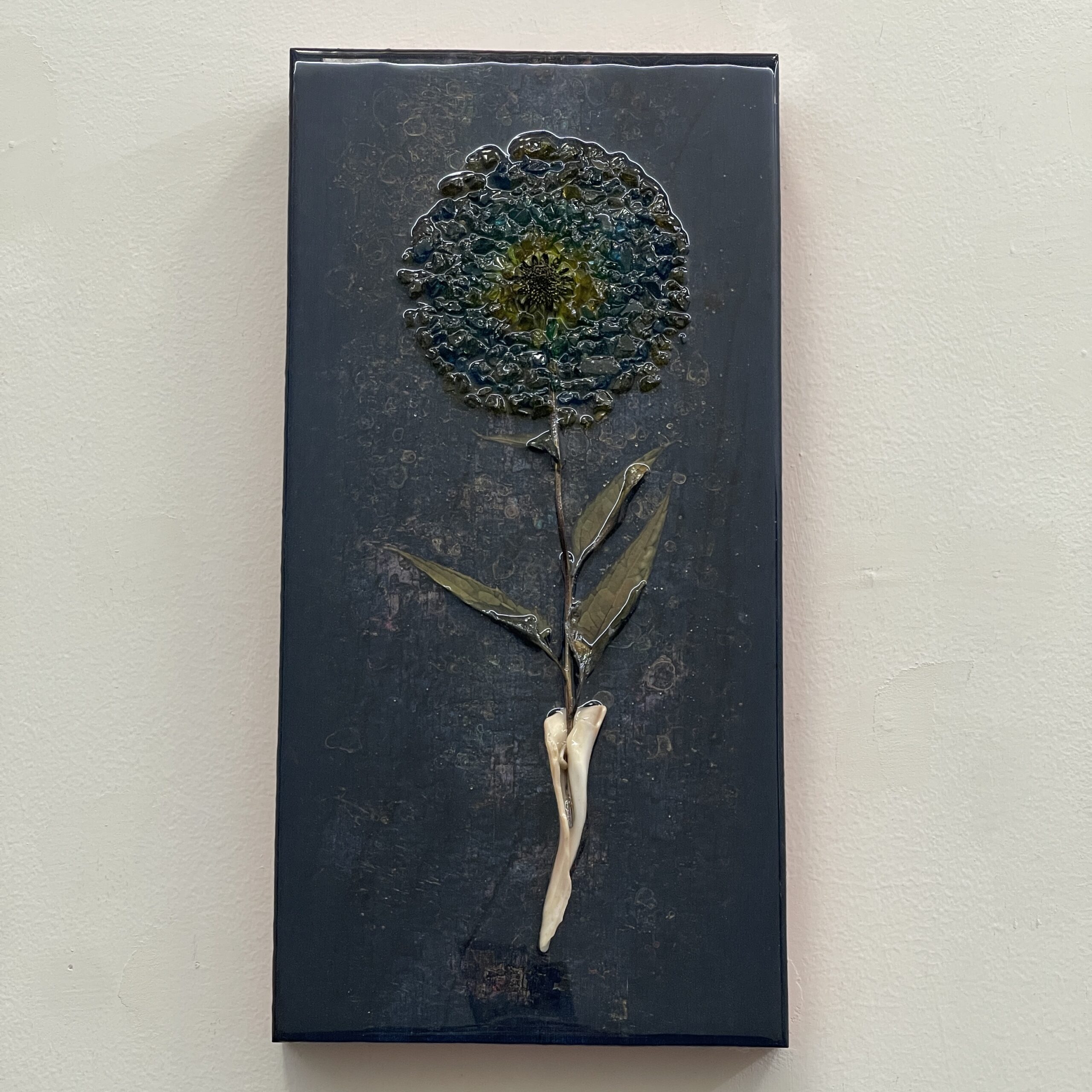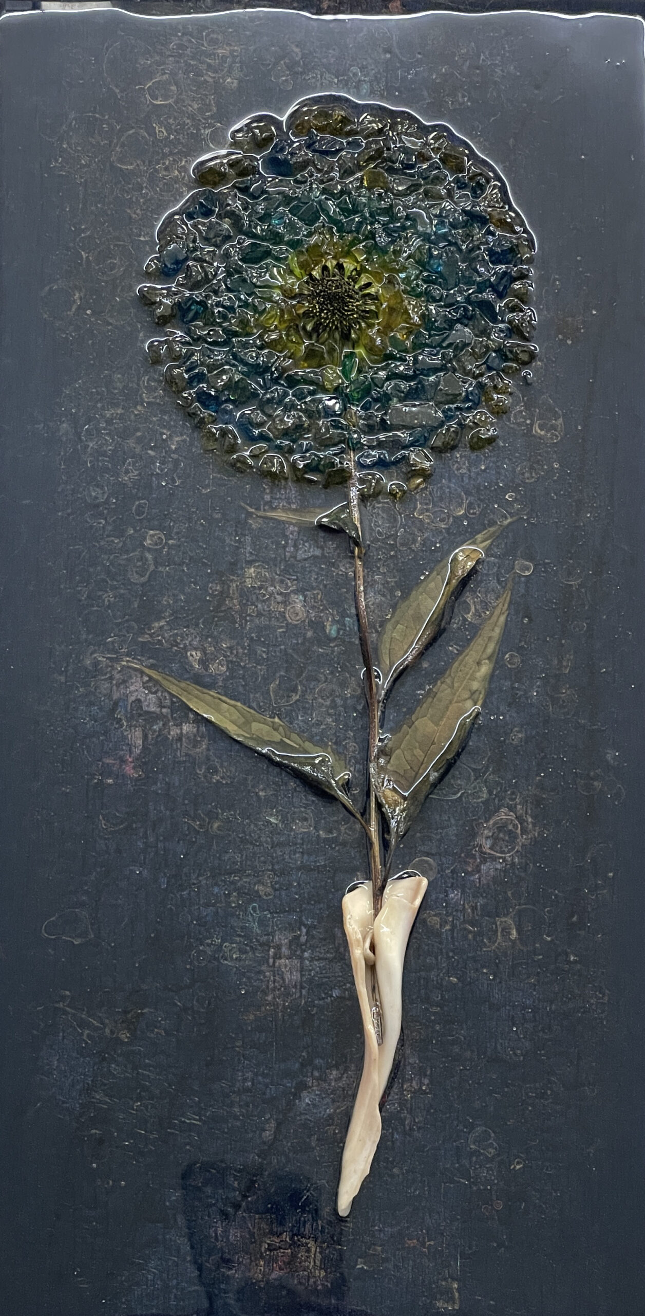 Acrylic, resin, shell, flower, colored glass