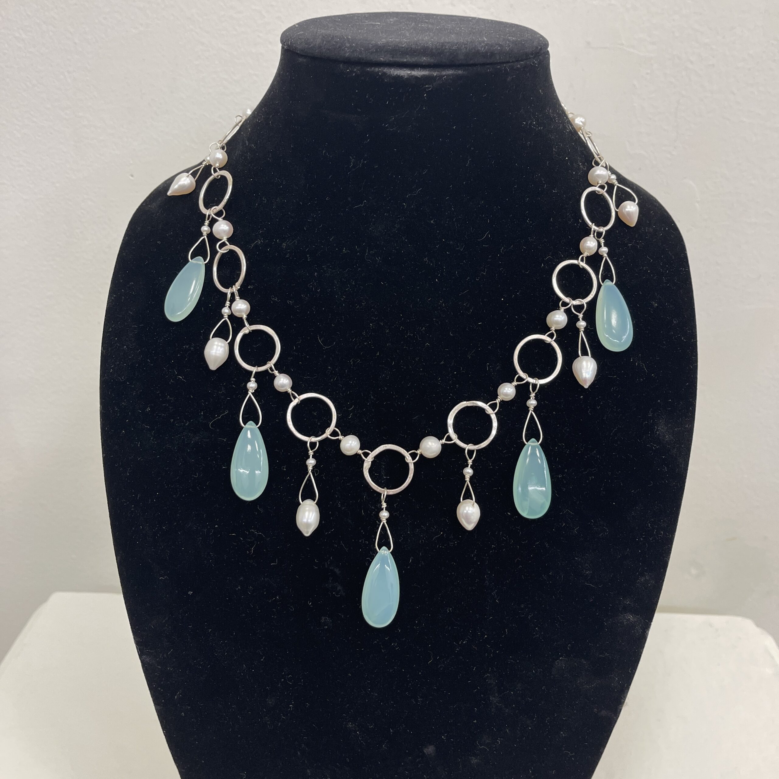Hill tribe silver, pearl, chalcedony