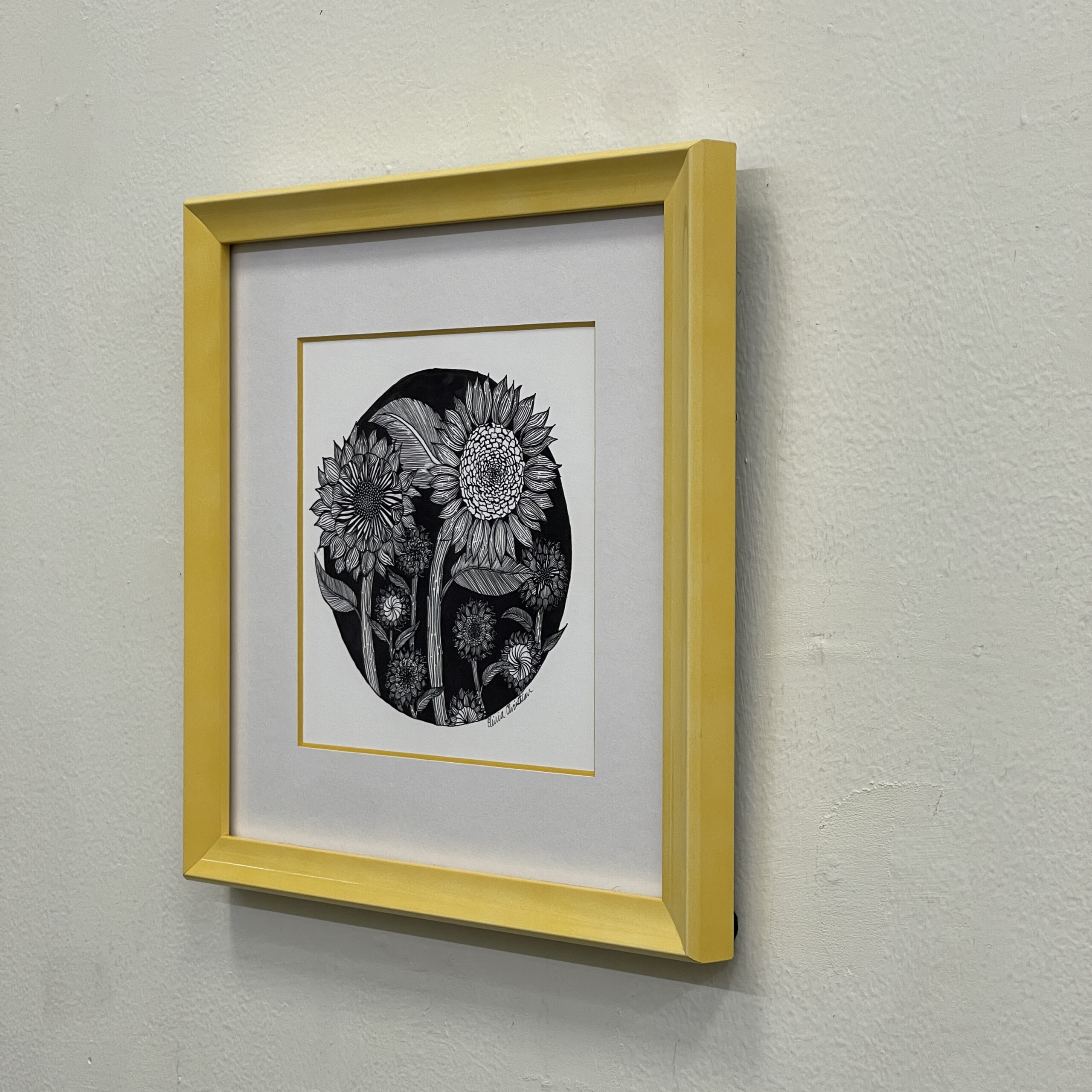 5 x 5 inches, framed to 9 x 9 inches