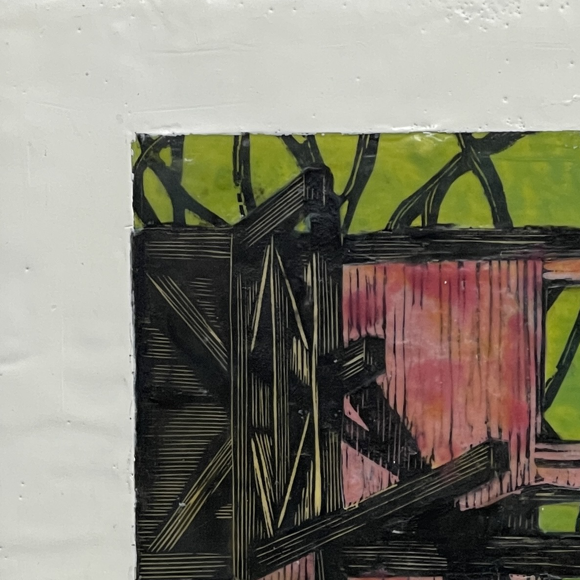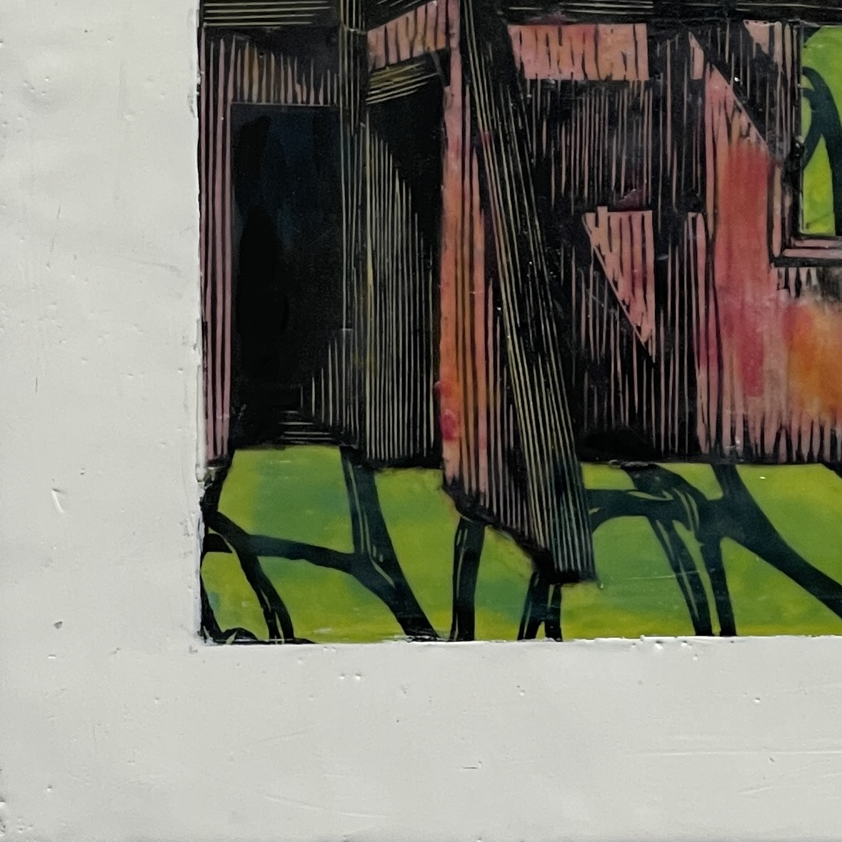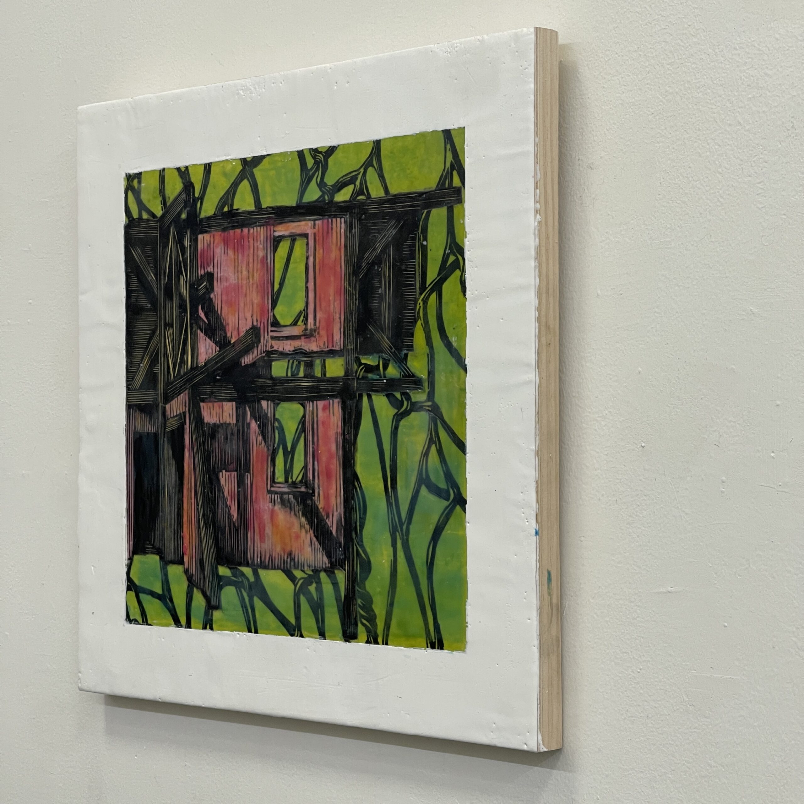 Woodcuts, pigment and beeswax on panel